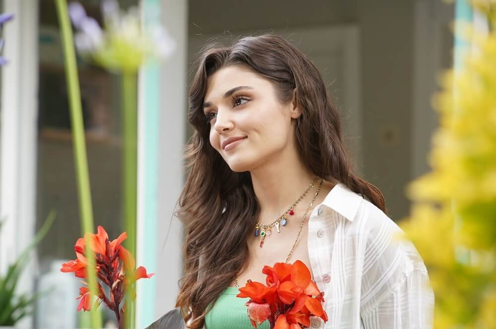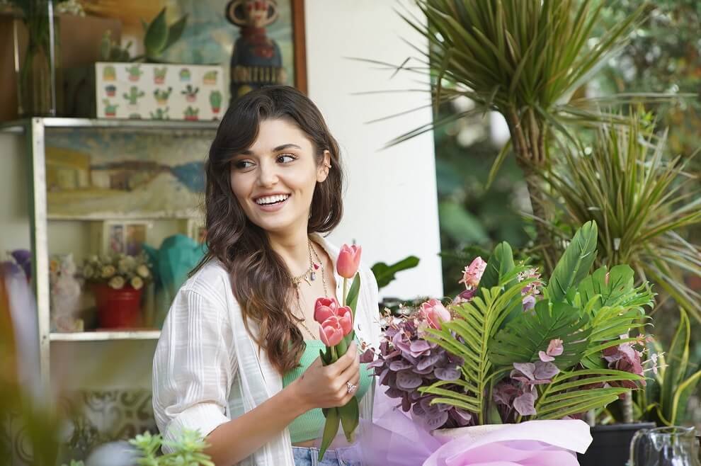 • Eda Yıldız (episodes 1–52), played by Hande Erçel. A dreamer who is passionate about flowers, Eda lives with the pain of the premature loss of her parents. She has a bitter enemy: Serkan Bolat. In fact, he canceled her scholarship, preventing her from graduating as a landscape architect and studying in Italy. That’s why she works in her aunt’s flower shop, who raised her and who treated her like her own daughter. They both share a home with Eda’s childhood friend, Melo.